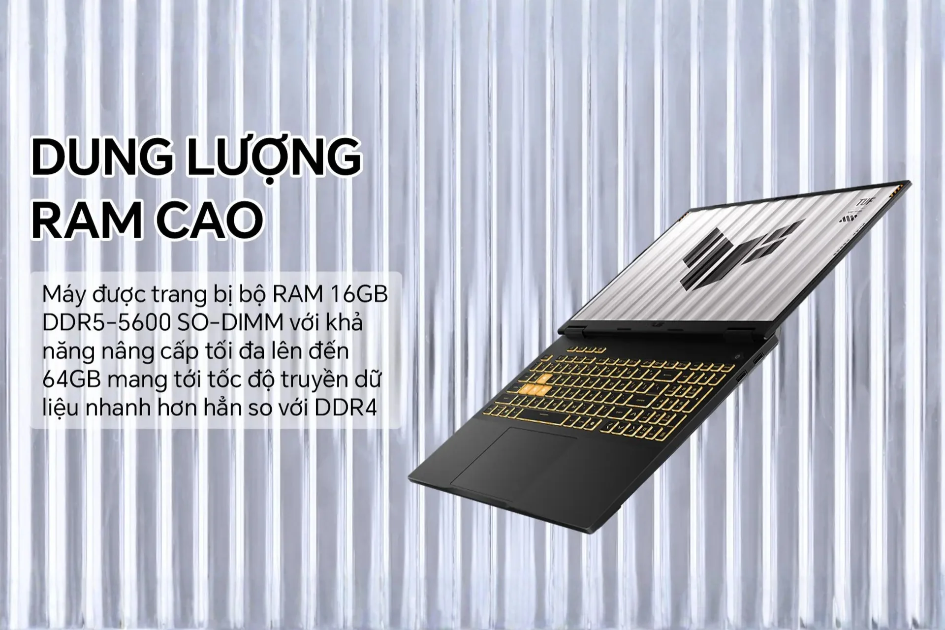 - RAM 16GB DDR5 – tốc độ cao, cho khả năng đa nhiệm mượt mà, nâng cấp dễ dàng lên 32GB.