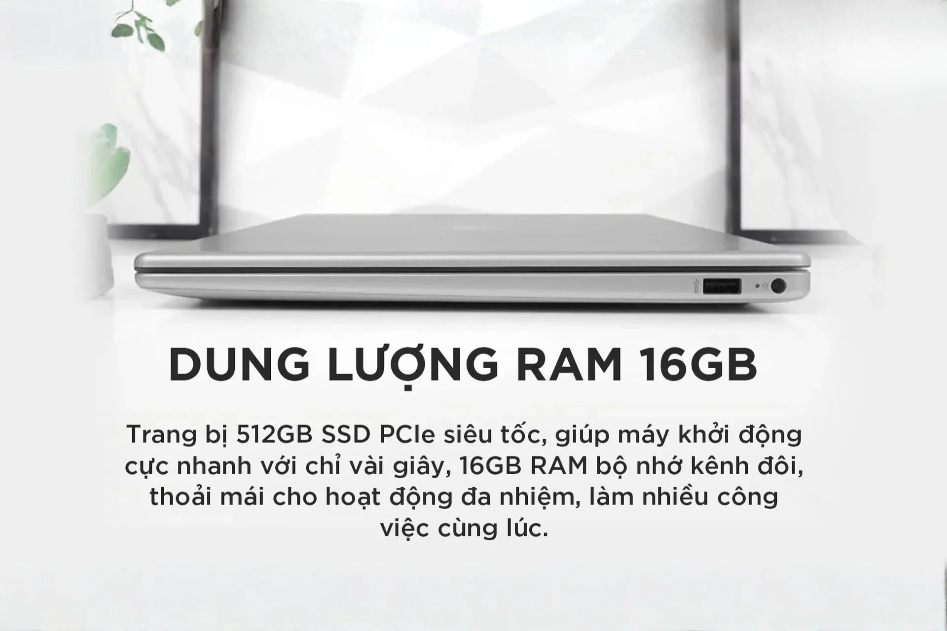 - RAM 16GB DDR5 – tốc độ cao, hỗ trợ mở nhiều phần mềm cùng lúc mà vẫn mượt mà.